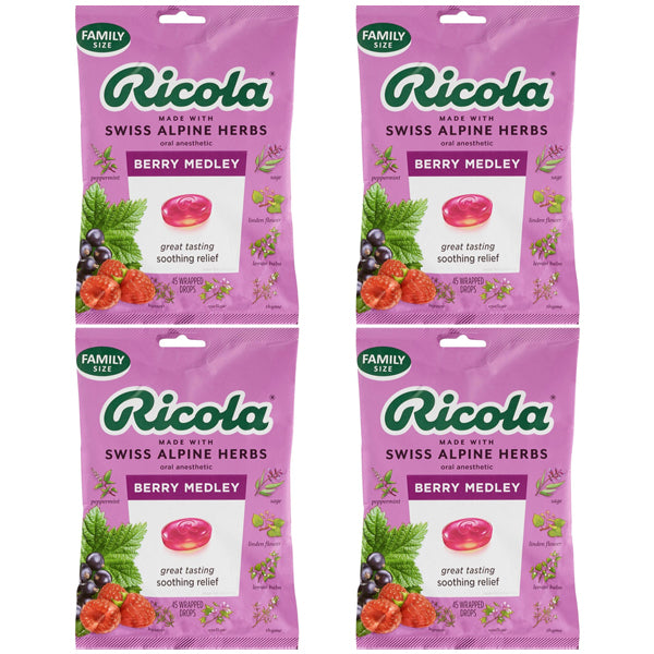 4 Pack - Ricola Berry Medley Throat Drops Throat Relief & Care 45 Count Each