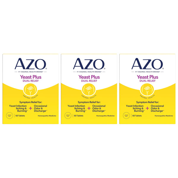 3 Pack - Azo Yeast Plus Dual Relief Yeast Infection Treatment 60 Tablets