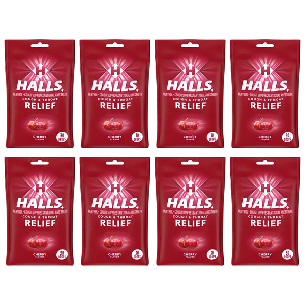 8 Pack - Halls Relief Menthol Cough Drops Cherry Flavor 30 Count Each