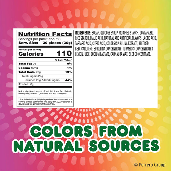 - FRUITY CANDY DELICIOUSNESS: Start with a crunch and continue with a mouthwatering fruity candy chew that's made with colors from natural sources, is gluten-free and does not include GMO ingredients