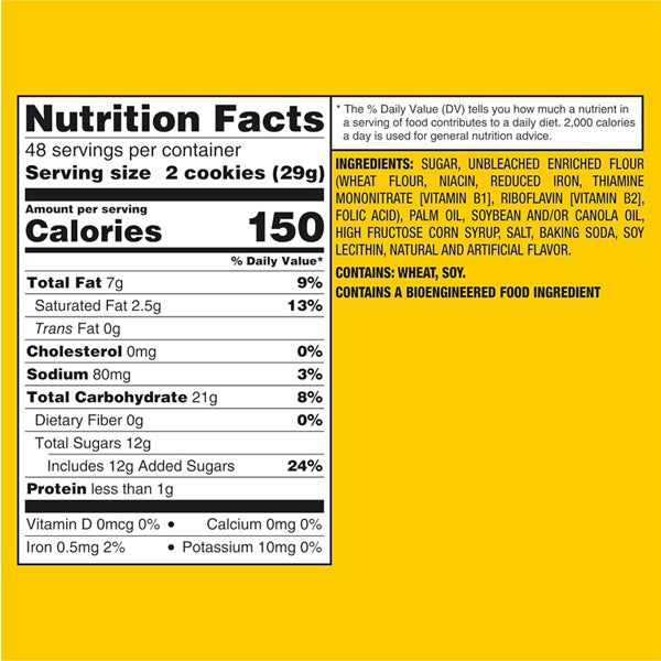 OREO Double Stuf Golden Sandwich Cookies are the favorite for those who like double creme in their golden OREO cookies. These vanilla sandwich cookies are filled with twice as much classic OREO creme filling, making them supremely dunkable and delicious. Shareable king size OREO cookie snack packs include eight OREO Double Stuf cookies making them perfect for sharing. Individually wrapped OREO cookie king size packs are great for taking on the go as travel snacks or packing in lunches for an office snack. Each bulk cookie box includes 12 total packs of OREO Double Stuf Golden Cookies.