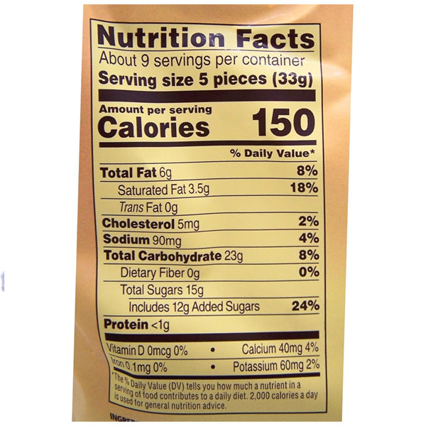 - Soft caramel candy made with real butter, fresh cream, white and brown sugars, a pinch of salt and a lot of time