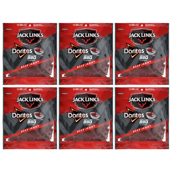 Ignite your tastebuds with JACK LINK’S® Doritos Sweet and Tangy BBQ ORIGINAL beef jerky. This all-new mash-up combines the classic, Jack Link’s Original jerky taste you love with Doritos Sweet and Tangy BBQ Finish. Are you ready for it? Shelf-stable. Individually packaged. Jerky & Dried Meats. Jack Link's Doritos Sweet & Tangy BBQ Jerky blends bold barbecue flavor with Doritos-inspired zest for a smoky, tangy snacking experience.